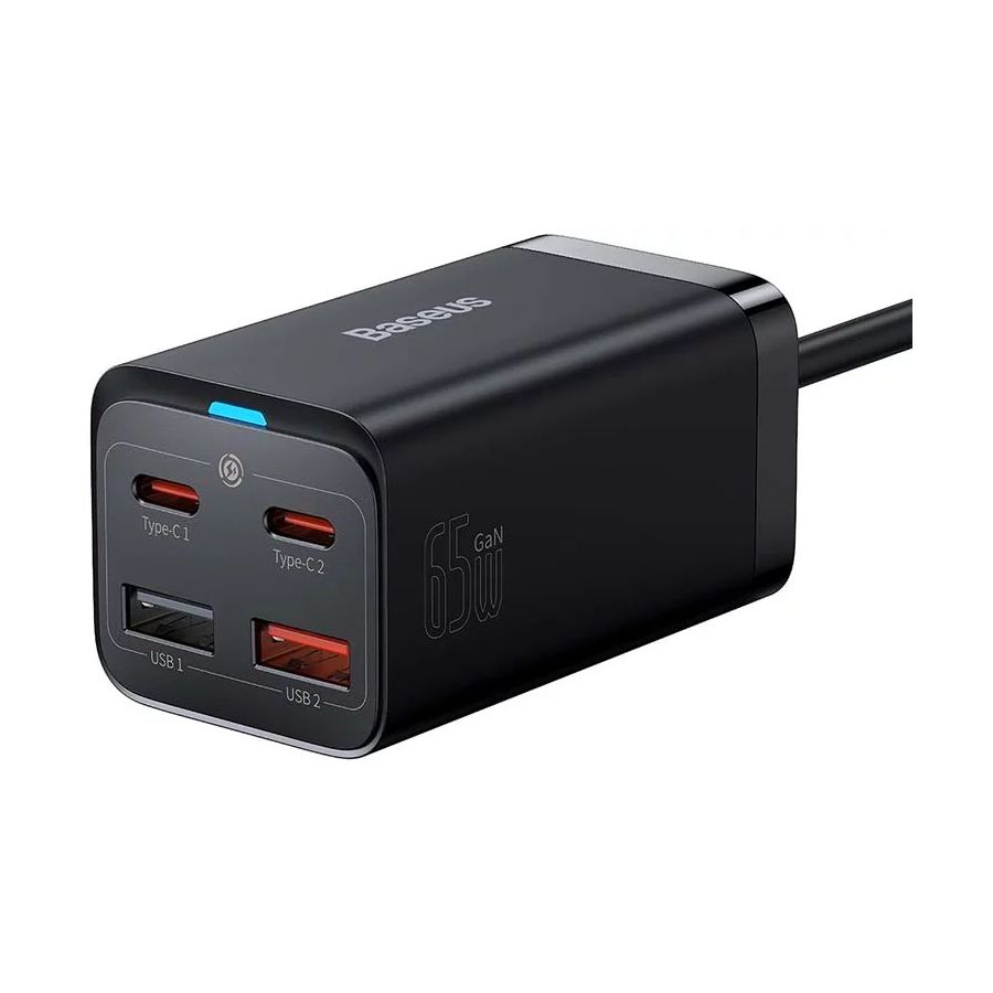 Carregador Baseus Rápido Gan3 Pro: 2x Usb-C: 2x Usb: 65W Preto