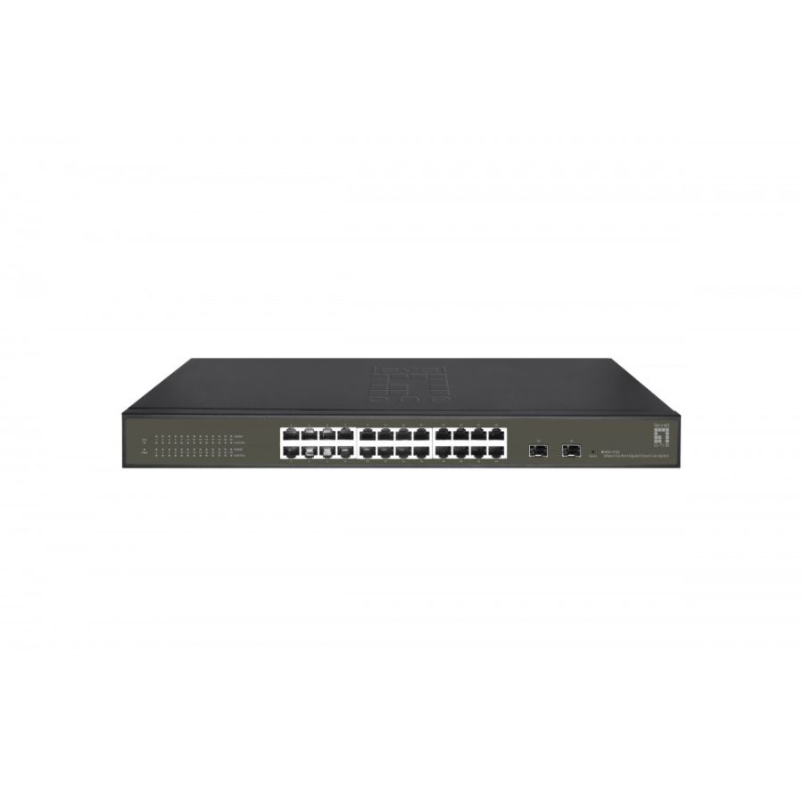 LevelOne GES-2126. Tipo de switch: Gerido, Camada de switches: L2. Tipos de portas ethernet Basic switching RJ-45: Gigabit Ethernet (10/100/1000), Número de portas ethernet Basic switching RJ-45: 24. Full duplex. Tabela de endereços MAC: 8000 entradas, Capacidade de routing/switching: 52 Gbit/s. Normas de Comunicações: IEEE 802.1Q, IEEE 802.1p, IEEE 802.3, IEEE 802.3ab, IEEE 802.3az, IEEE 802.3u, IEEE 802.3x, IEEE.... Montagem em prateleira